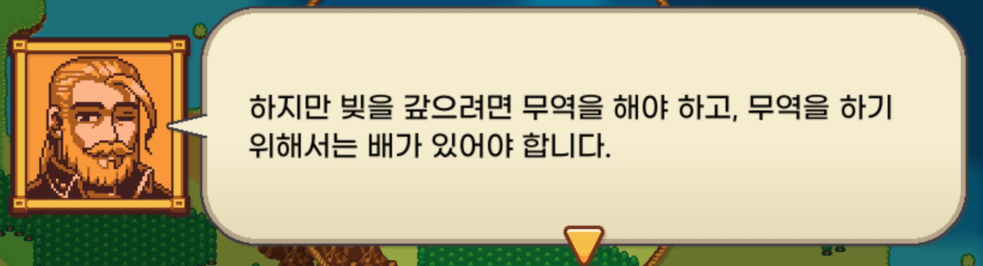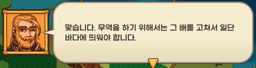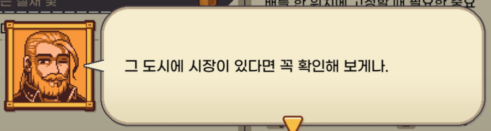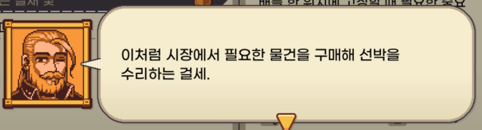 이렇게 선박 수리에 필요한 물품을 근처 도시를 찾아다니며 시장에서 구매하는 것이 목표다.