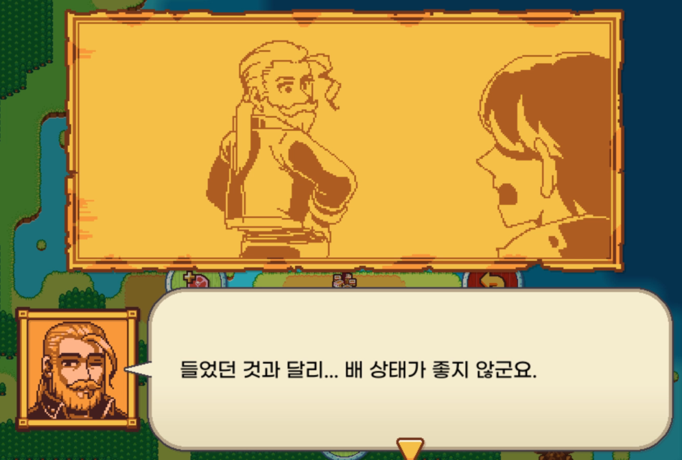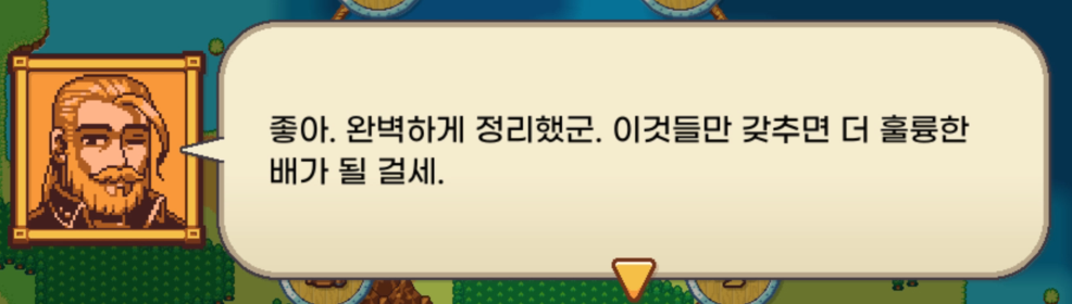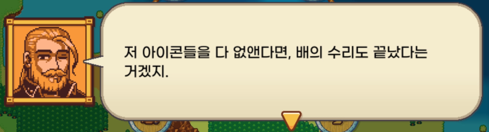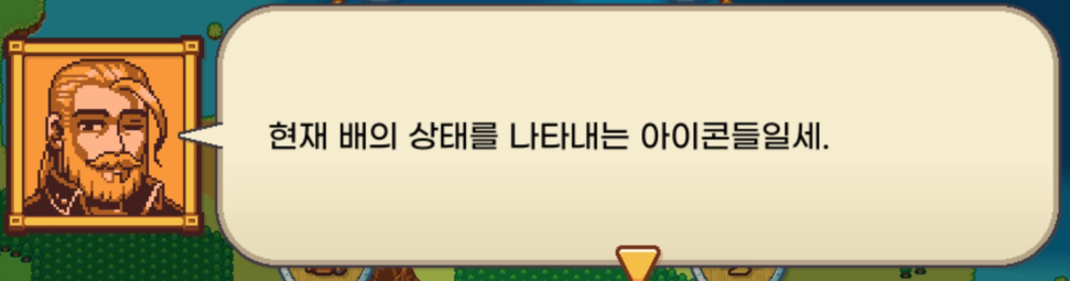 수리에 필요한 아이템을 시장에서 구매할 때마다 아이콘이 사라지고 선박의 기능이 정상으로 돌아오는 시스템