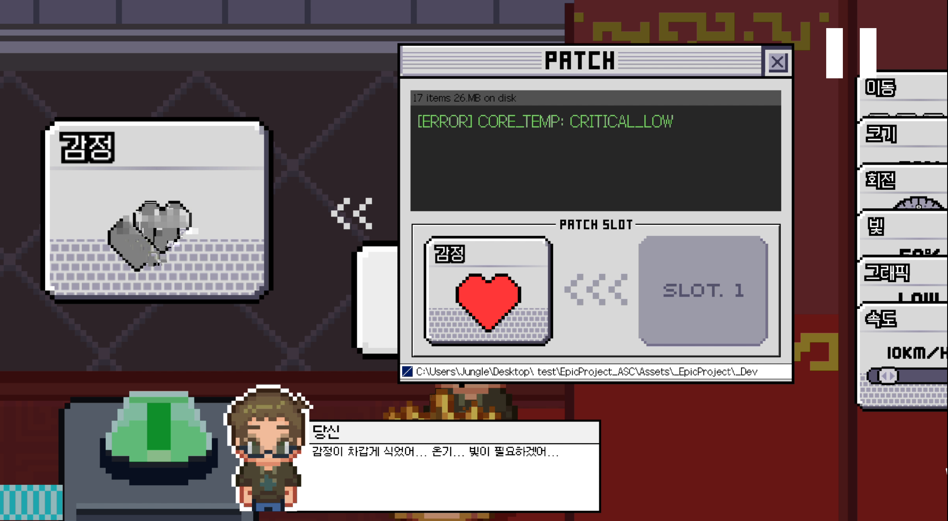블럭을 드래그하거나 우클릭으로 플레이어 상태창으로 옮기면 이동 기능을 플레이어가 사용할 수 있다.