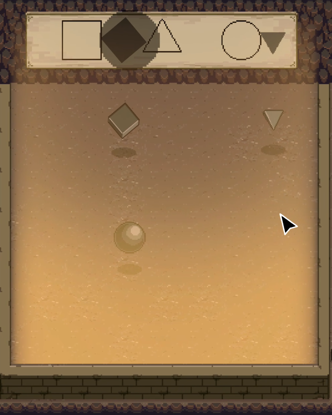 빈 도형에 그림자를 맞추고 녹색 선으로 표시되면 통과. 세 그림자를 전부 일치시키면 문이 열린다.