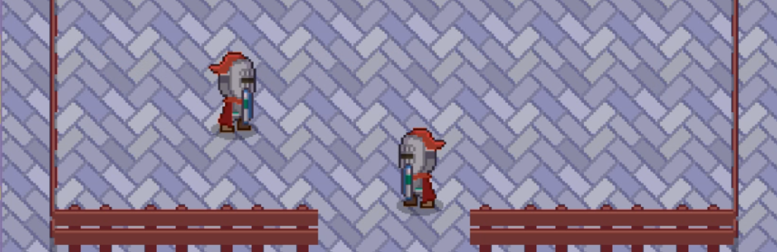 성문 앞에서 열심히 뛰어다니는 두 경비병의 상태창에 속도 블럭을 장착시켜 속도를 최대한 낮추고 성 안으로 진입하면 스테이지 클리어.