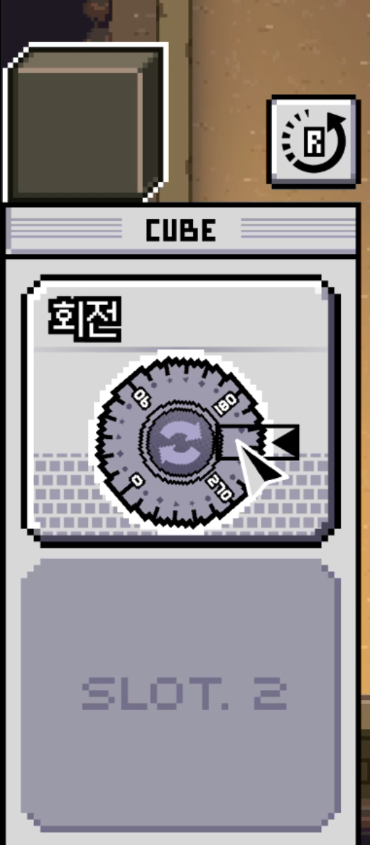 우선 큐브를 클릭한다. 회전 블럭을 가지고 있다.