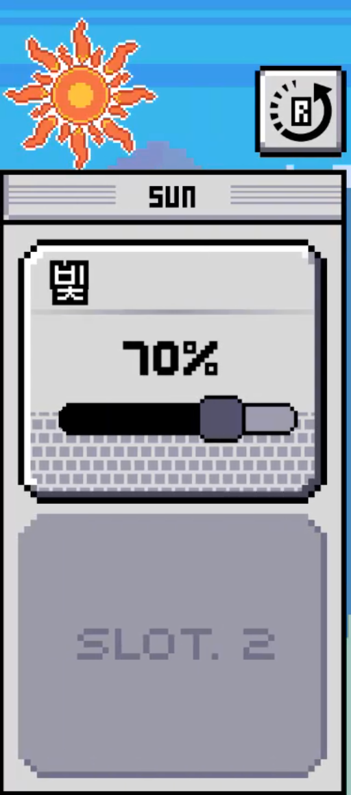 빛 블럭의 경우 70% 안팎이며 올바른 수치에 맞추면 플레이어의 대사가 바뀌기 때문에 그것으로 확인할 수 있다.